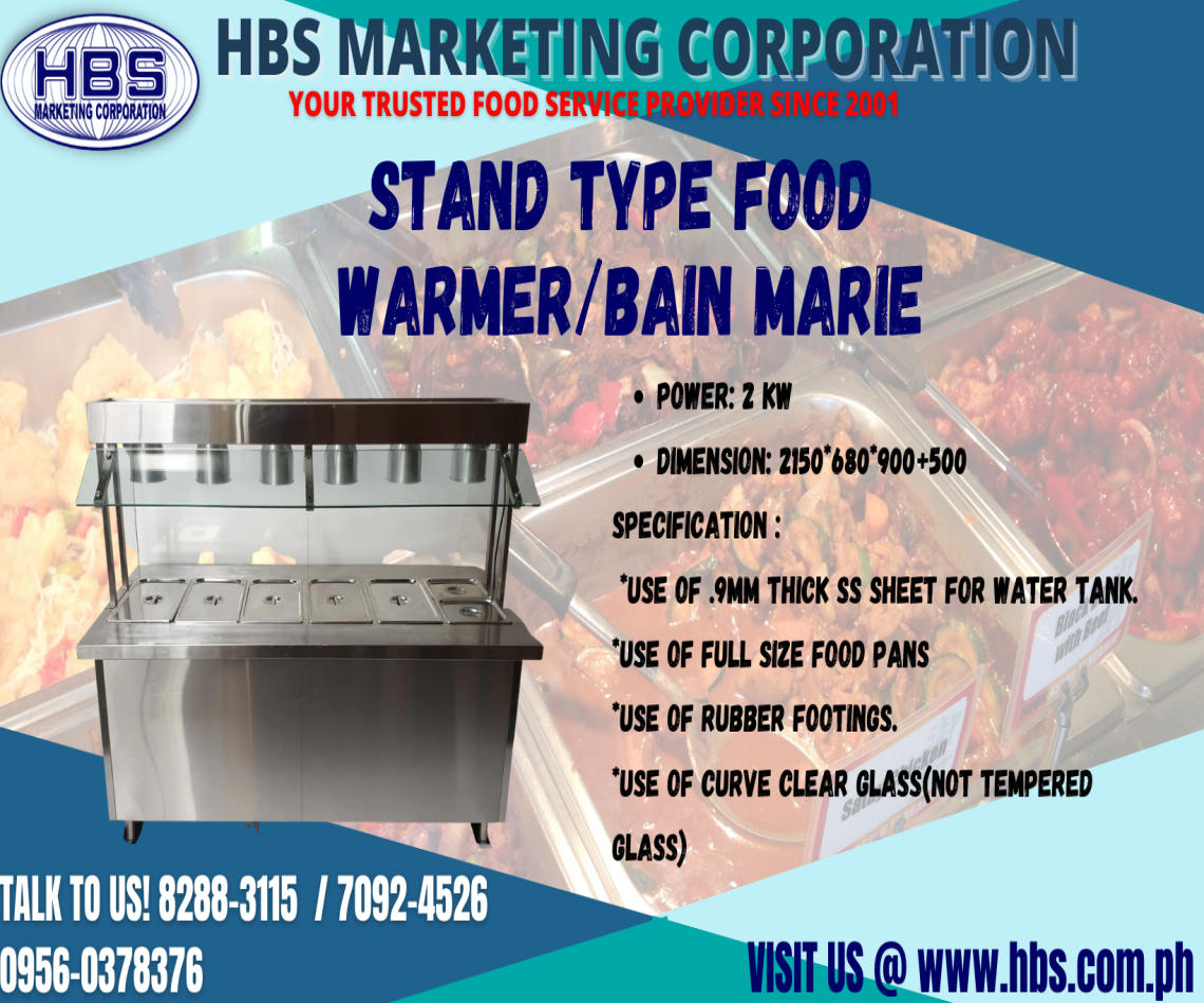 STAND TYPE BAIN MARIE (4 & 6 pans capacity)