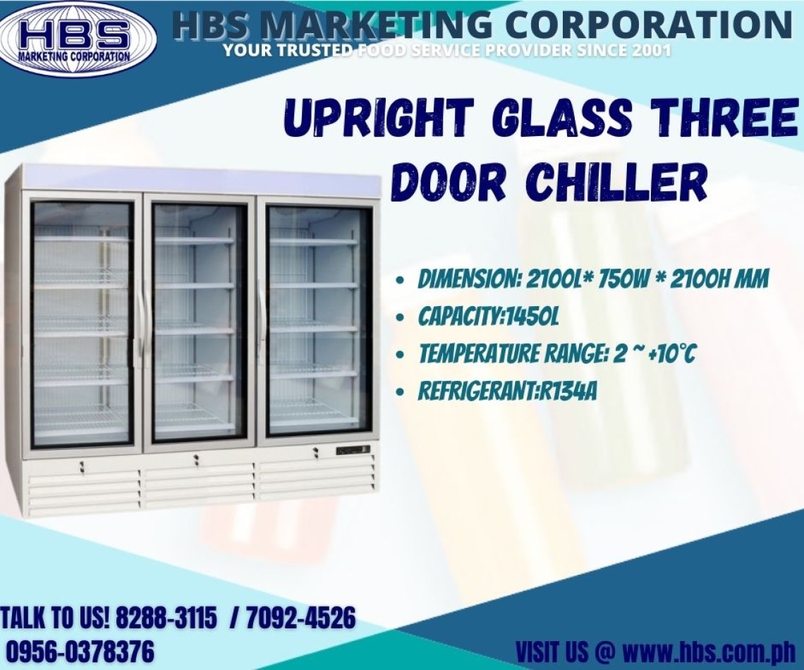 Glass three 3 door upright 1400