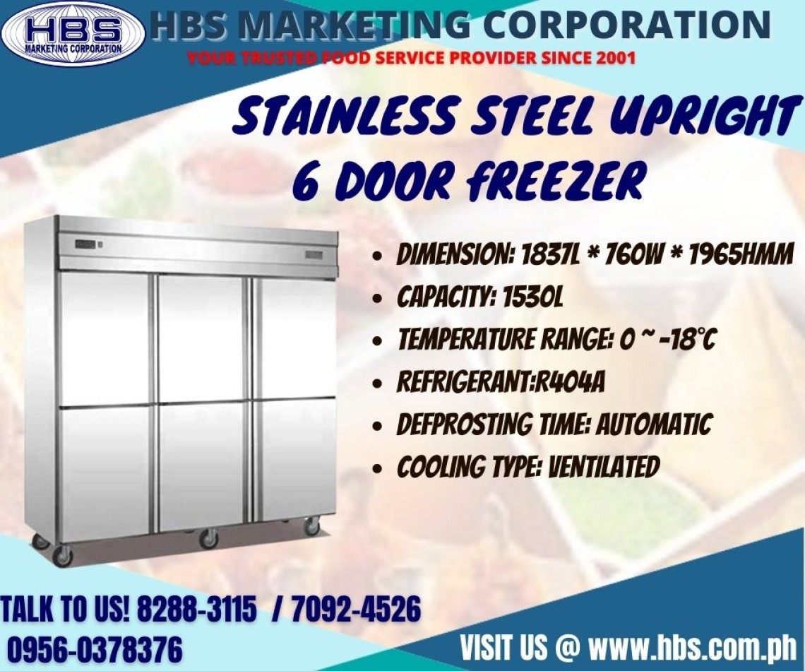 STAINLESS SIX (6) DOOR UPRIGHT CHILLER