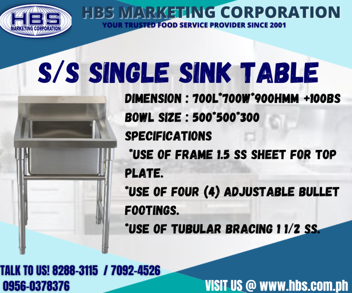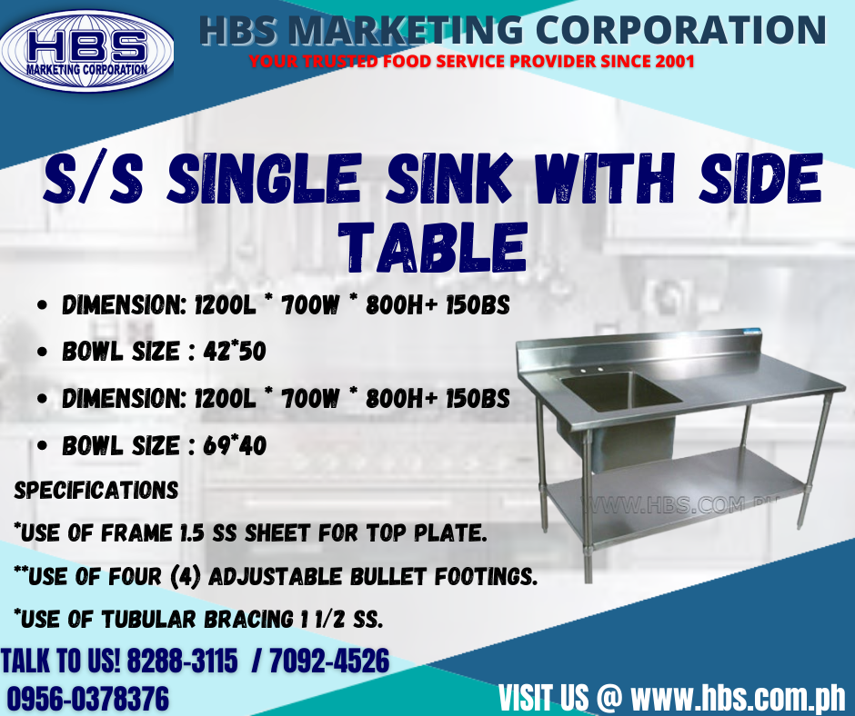 S/S SINGLE SINK WITH SIDE TABLE (LEFT DRAIN)