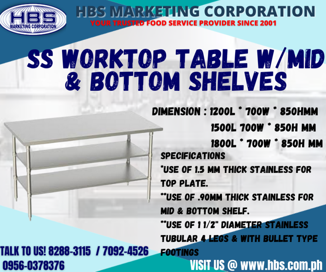 SS TABLE WITH MID AND BOTTOM SHELVES